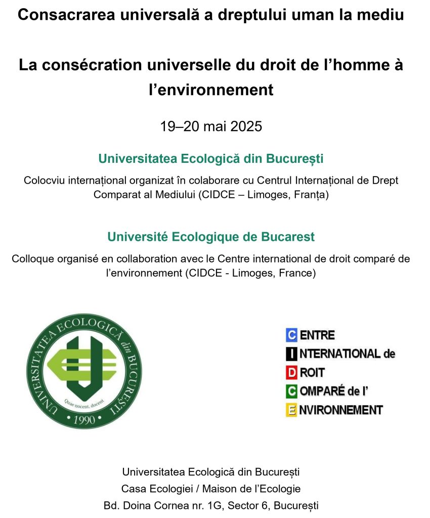 COLOCVIU INTERNATIONAL: CONSACRAREA UNIVERSALA A DREPTULUI UMAN LA MEDIU – 19–20 MAI 2025 –