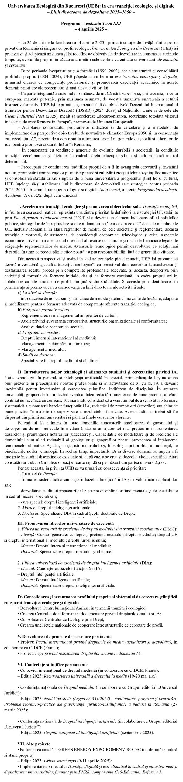 Universitatea Ecologica din Bucuresti (UEB): in era tranzitiei ecologice si digitale